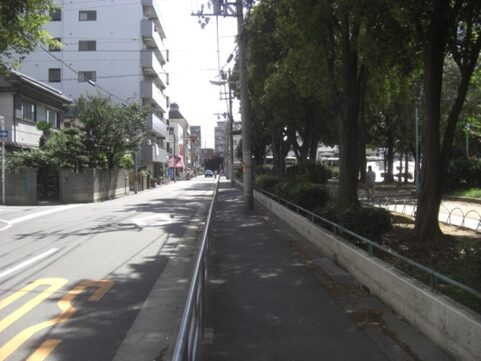 磯路2丁目、右に中央公園を見ながら進む