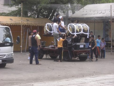 祭りの神輿の練習をしている