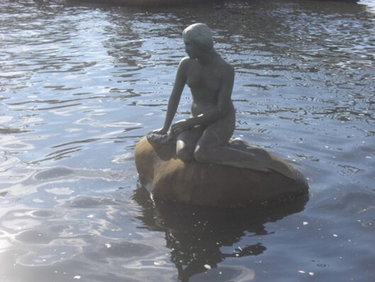 マーメイド像は、アンデルセン作「人魚姫」をモデルとして生まれた。陸にいる王子様と海にいるお姉さんの人魚姫かどちらにいくか迷っている姿をあらわしている。マーメイド像はデンマークのコペンハーゲン港と大阪港との文化交流の一環として1995年にカールスバーグ社から寄贈されたもの