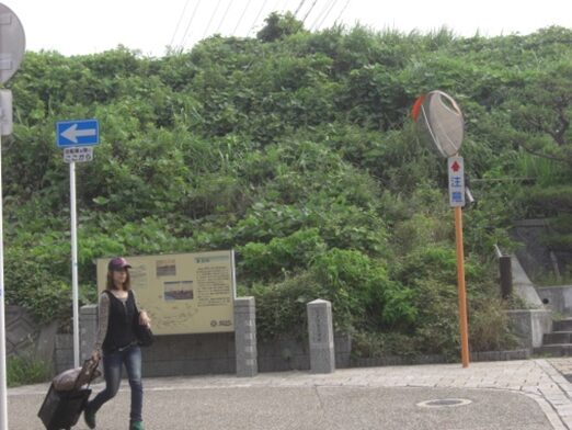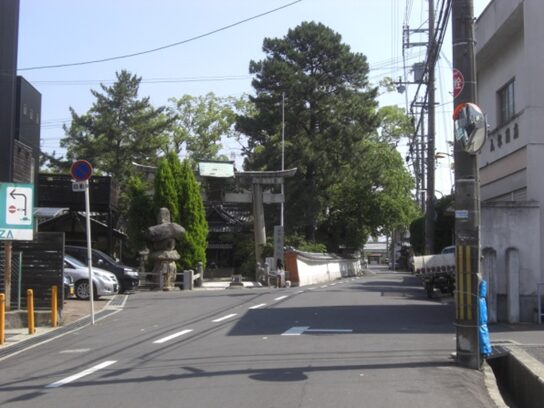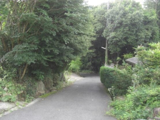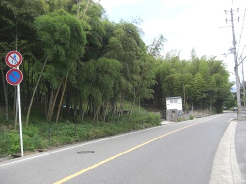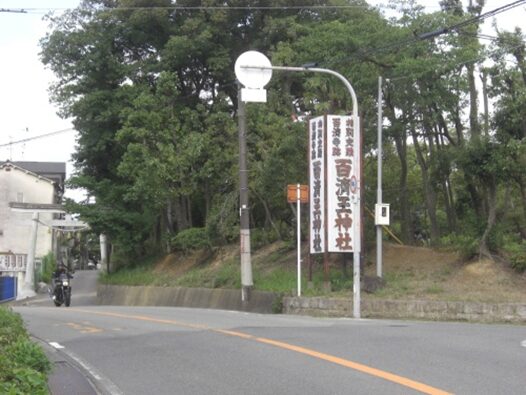 百済寺址を見て鳥居を出て、街道の百済坂に出る。振り返ったところ