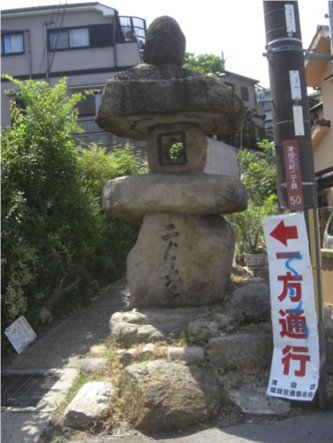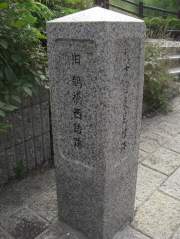 突当り正面に 道標 「旧 鵲橋西詰跡」