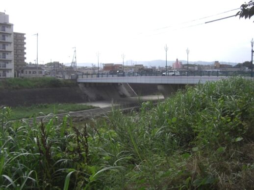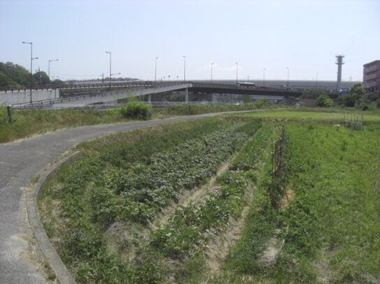 堤防から禁野橋が見えてくる