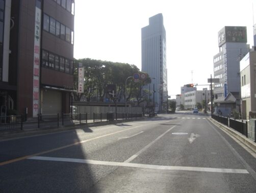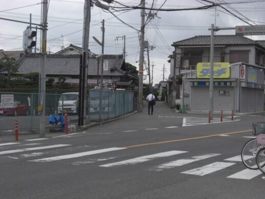 枚方市駅の前からの広い道路を横断する