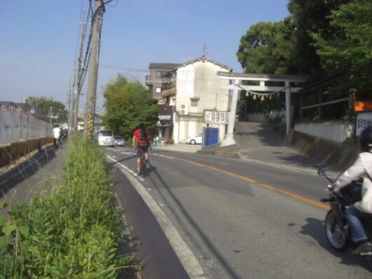 右にセブンイレブンのある西池之宮交差点を過ぎ、東池之宮交差点をすぎる