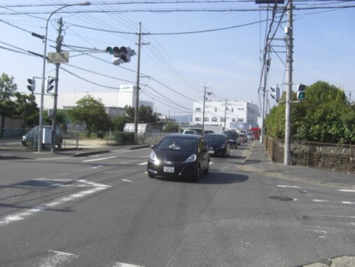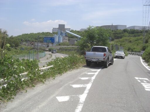 四辻交差点から暫く真っ直ぐ自動車道を進む