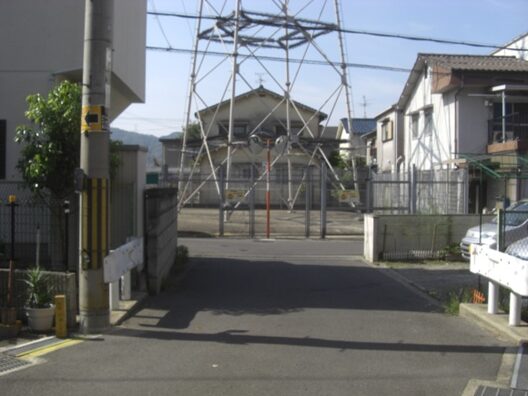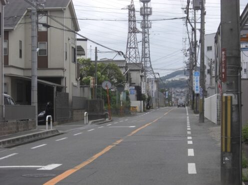 小川の交差点を右に進むと、鉄塔が先にみえるこの辺りは野村元町