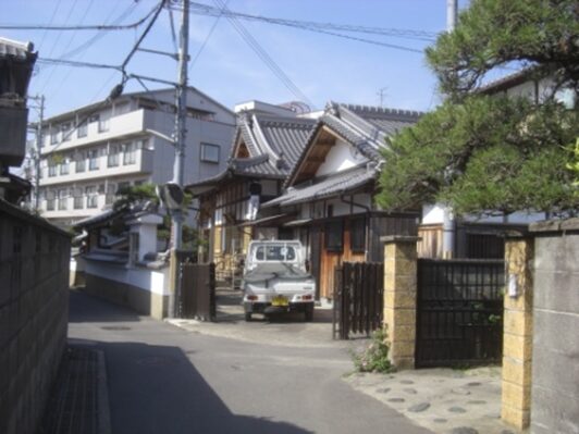 奈良街道沿いの旧家の大きな家