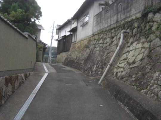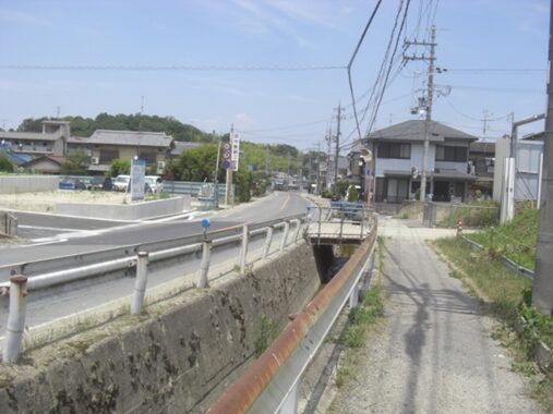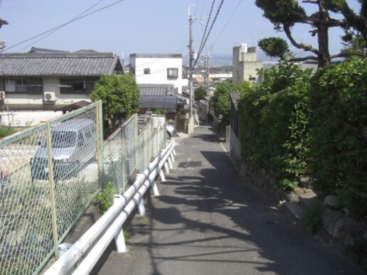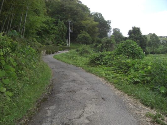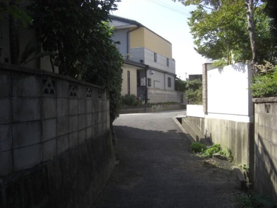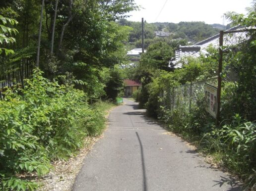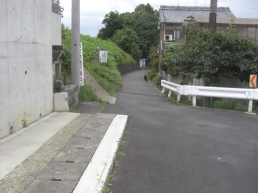 この辺りの道は完全に旧道は消滅して、宅地造成されて新道となっている。かつては谷間の道の坂を上っていたようだが、偲ぶべきもない
