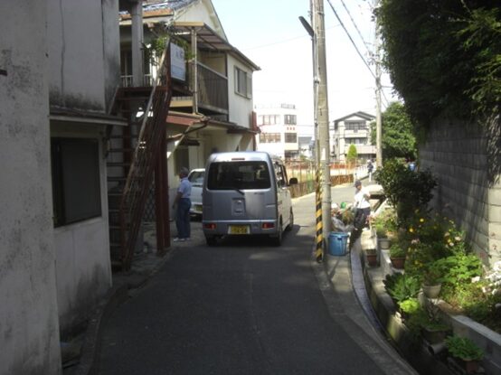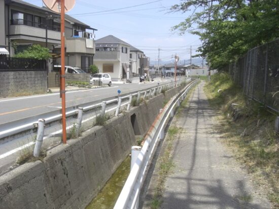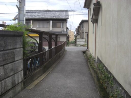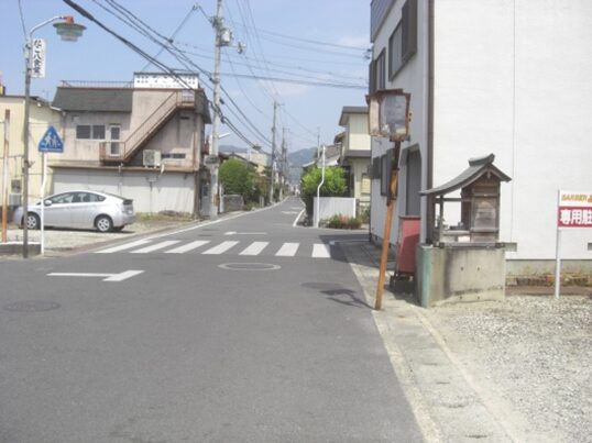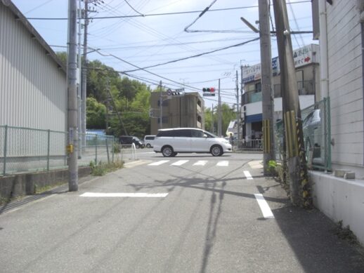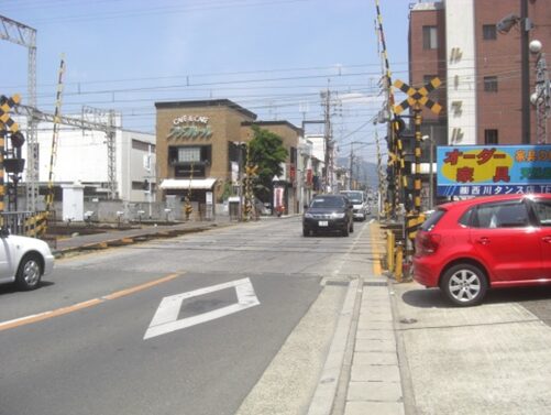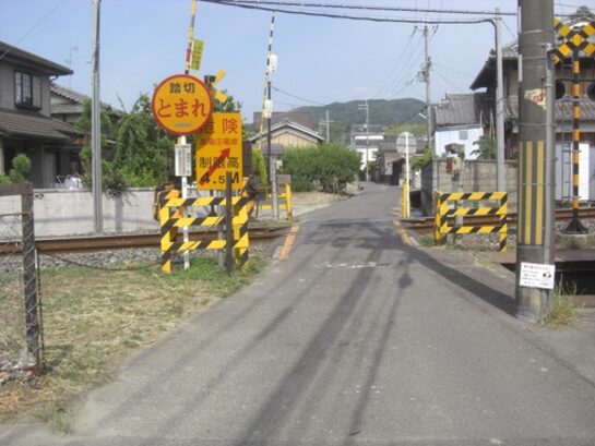 踏切の先150m程の細い道