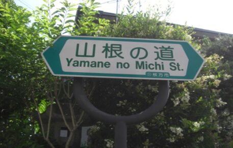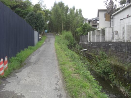 すぐにまた道が分岐するので左に進む、小川が右の道に沿って離れる。その先道なりに100mほど進むと、小川を渡るその前に鉄塔が建ち突き当たるので左に折れる。左に折れて150mほど東に進むと突き当たるので左に折れる。20mほど右に緩やかにカーブすると、道が分岐して、左の道は先ほどの南皮膚科医院の前に出る道。右の道を進む、30mほど先の十字路は真っ直ぐ、更に50mほどで右に90度曲がる、真っ直ぐは道は無くなる。左に折れて10mほどで突き当たるので道なりに右に折れる、60mほどで右に極楽寺があり、その前で先ほどの飯田書店の辻で右に折れた道と合流することとなる。どの道が旧道かまたほかに道があるのか分からないが私は両道を歩いてみた。
