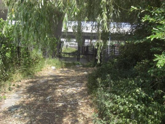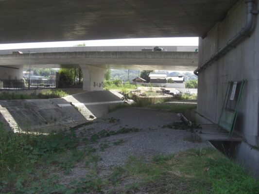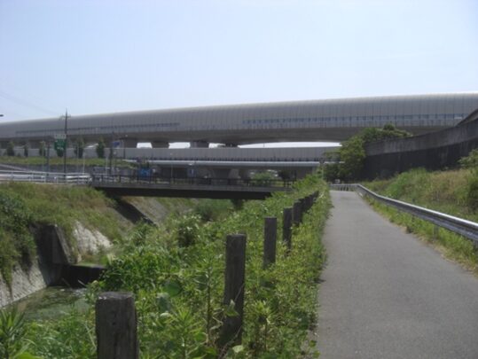 堤防下を更に進み、京阪交野線の高架下を潜る