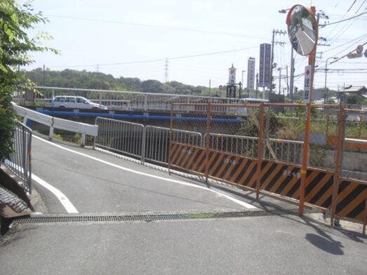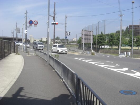 橋を越えたすぐの田辺高校前の信号交差点で分岐するので、右の道を入る