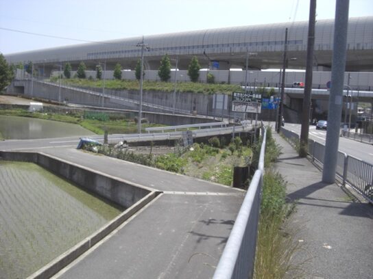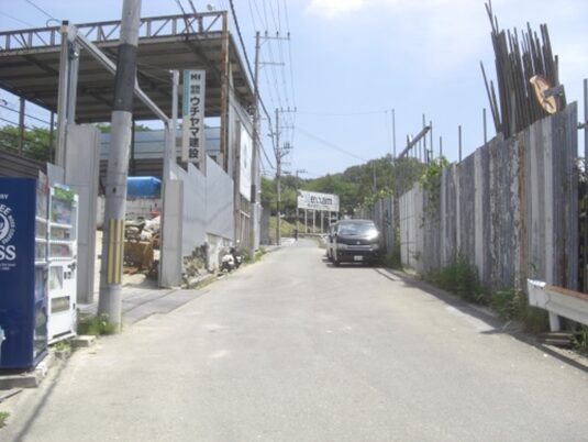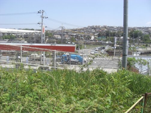 右に、エムケイ産業、アピカノート便箋の大きな看板を目印に、その少し先辺りから北ルートの道が左斜めに進んでいたが、今は全く想像もできない現状