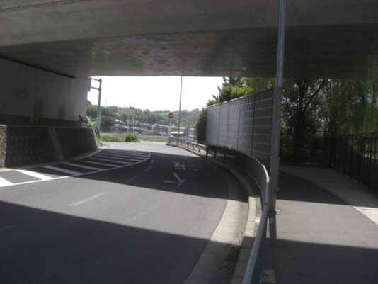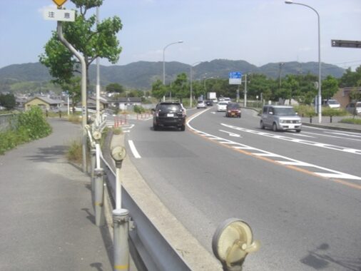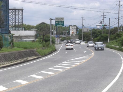 暫く進んだところで左から新道と合流する、草内口交差点に出て合流して進む