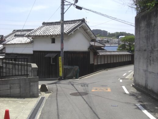 右手に旧家が残る振り返る