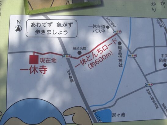 自動車道の交差点に出る、左角に一休寺の 道標