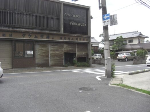 信号交差点を横断、左角に竹村商店