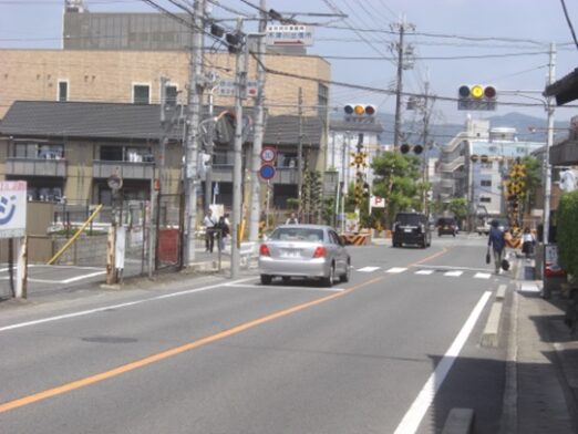近鉄京都線の踏切を越える