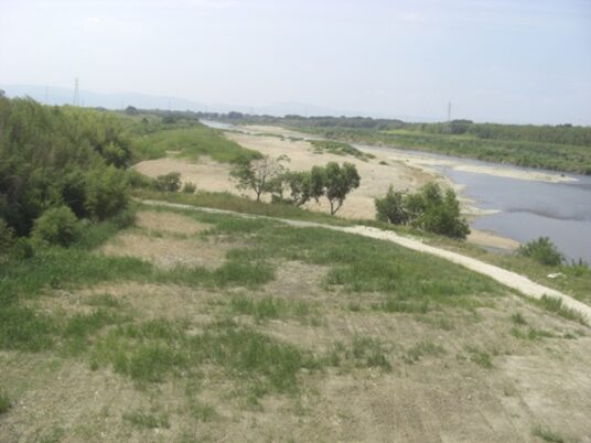 交野線を潜り左の堤防に上がる