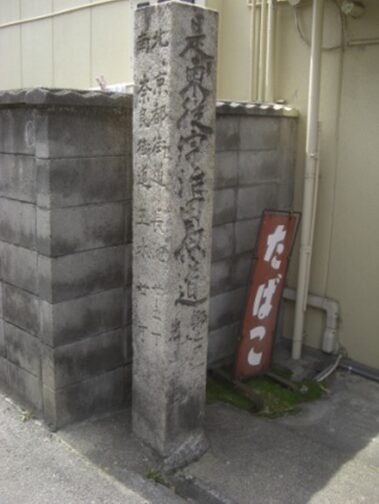 東見附で田辺街道(尊延寺街道)は突当りを右へ進み、京街道は左に進み分岐する