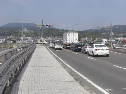 すぐ先で国道1号線に出るが、中央分離帯もあり車が多く左の信号交差点に迂回して、向こう側の旧道に出る