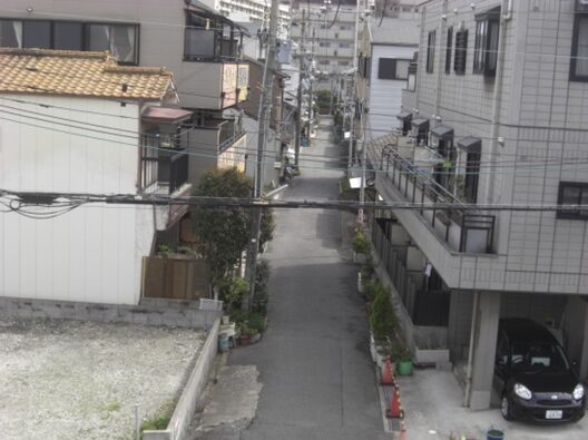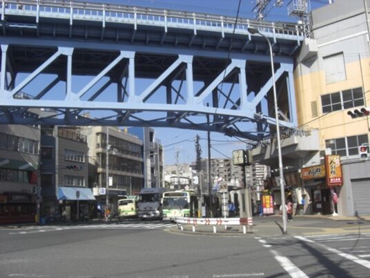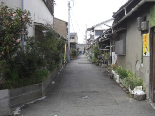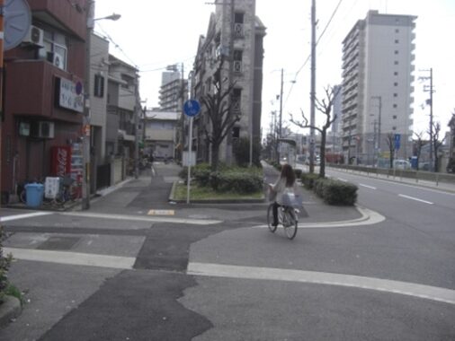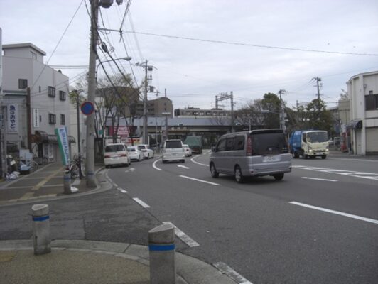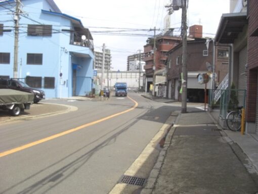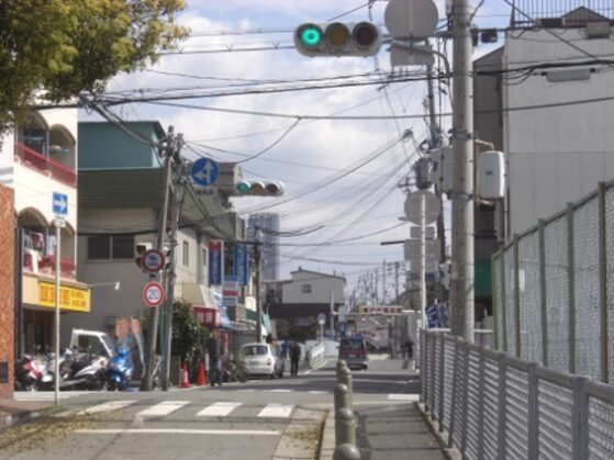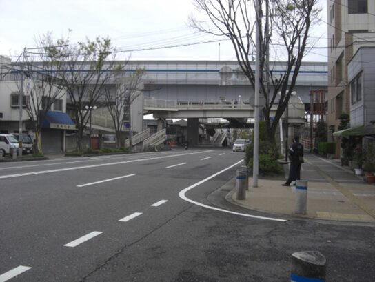 尼崎市大物駅近くの中国街道分岐~安治川海口路線の九条近く