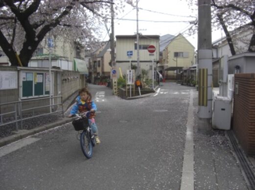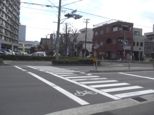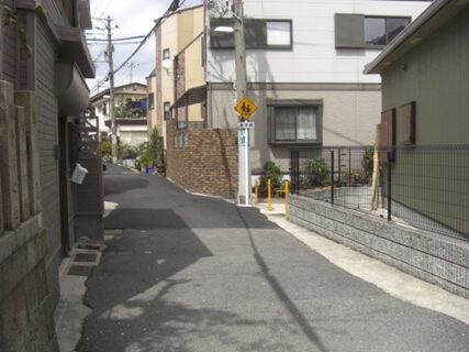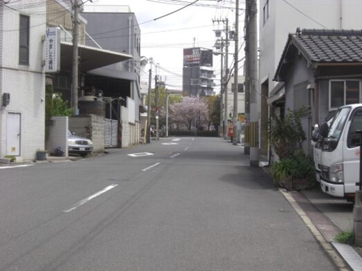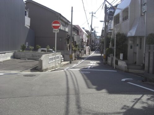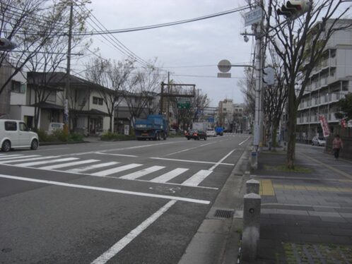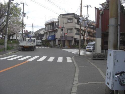 広い道路に出るので、信号を渡り少し右に進み左の道に折れる