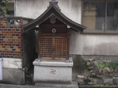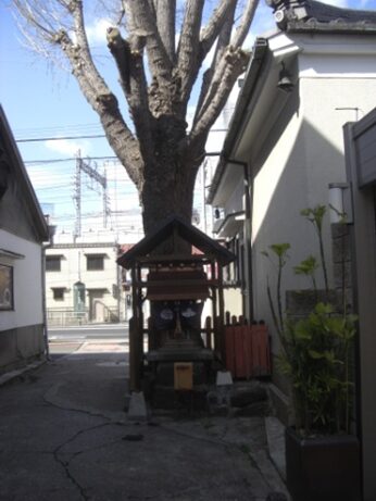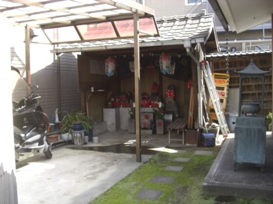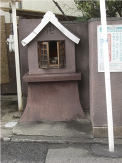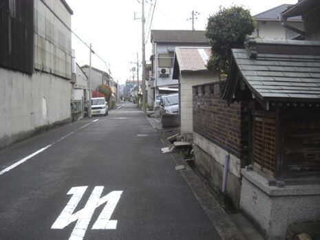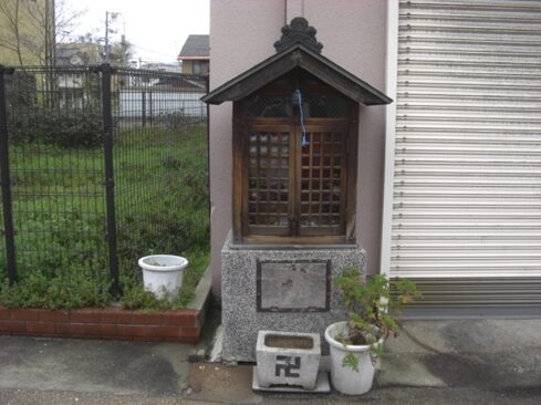 東本町交差点を左に折れ100mほど進むと国道の左一段下がり側道の道を進む。左民家を背に 祠