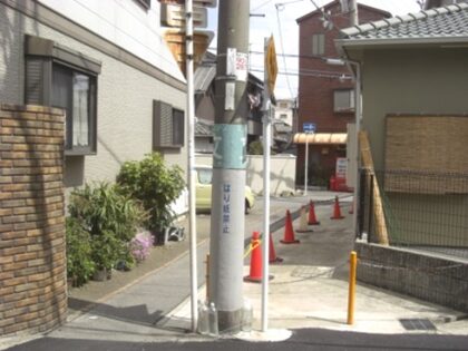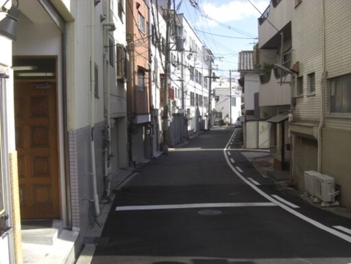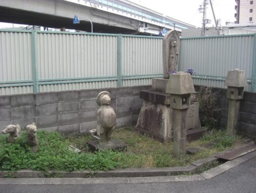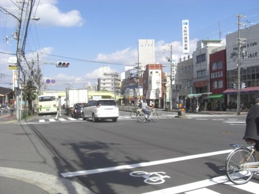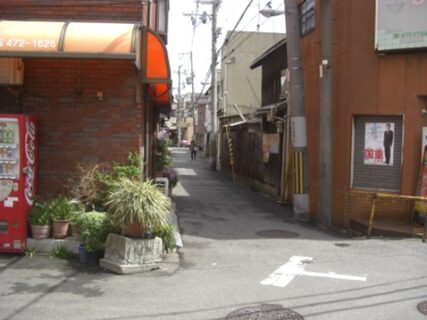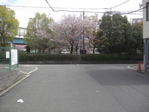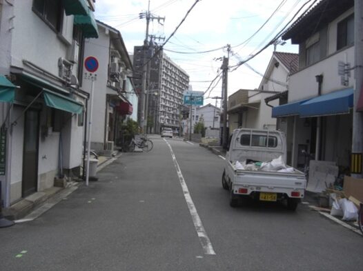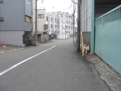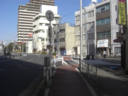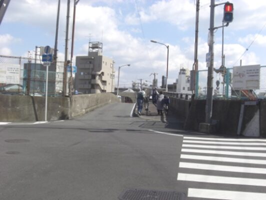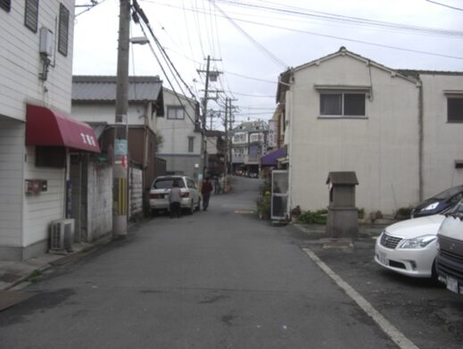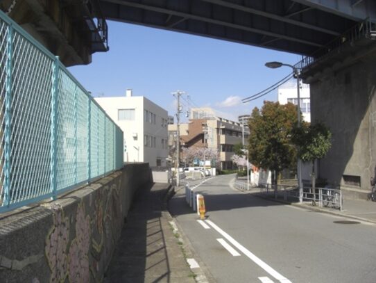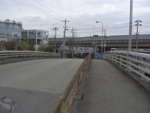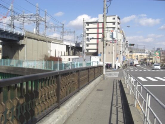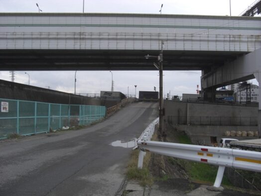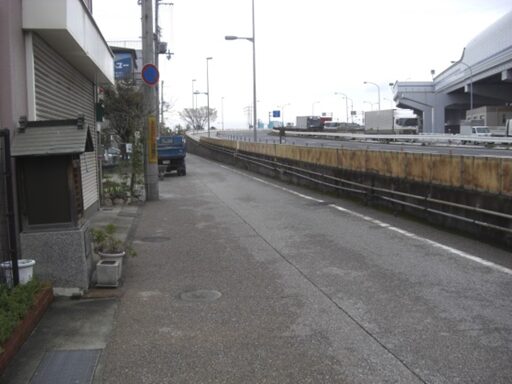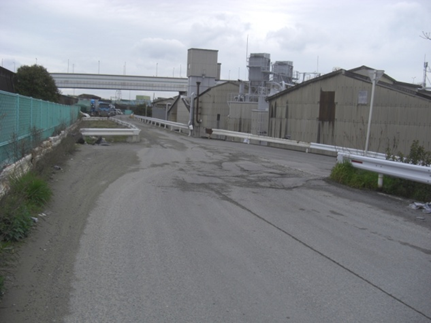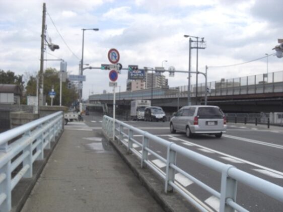 やはりこの道は旧道でないような気がするので、先ほどの迷った交差点に戻り、左へ進む。左伝法大橋からの国道43号線の高架を潜り真っ直ぐ進む。やがて突き当たるのでそこを右に折れる。
