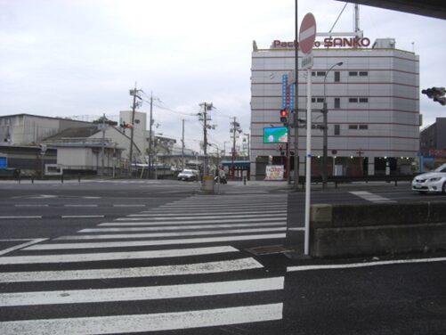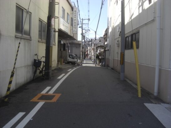 真っ直ぐ進んだところ東本町交差点で阪神高速に出るので潜らず手前で左に折れる
