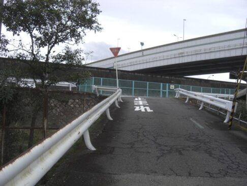 右に神崎川に沿って東に進むと、先ほどの辰巳橋から来ている高速道路に出る。そこを右に折れ国道43号線の神崎川に架かる中島大橋を渡る