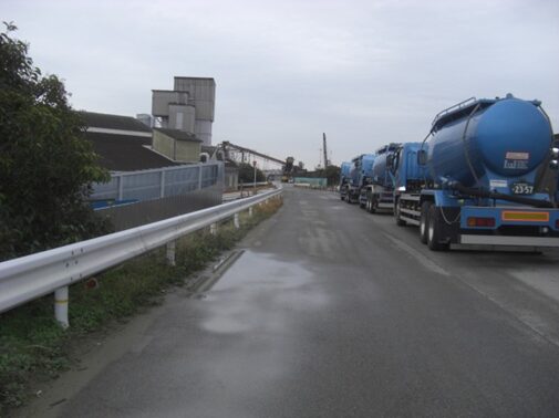 尼崎街道のここは佃島、民家はこの辺りは一軒もなく、砕石工場や大手会社の工場ばかりで、大型トラックばかり。旧道の面影なんかまったくない