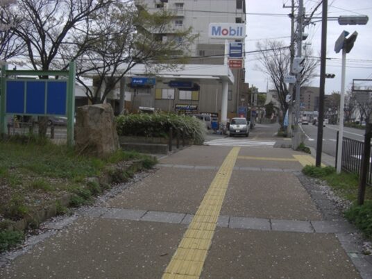 左に曲がり100mほど行ったところの信号交差点で迷った、左へ曲がるのが正しいのか、真っ直ぐが正しいのか、真っ直ぐ行くことにする。