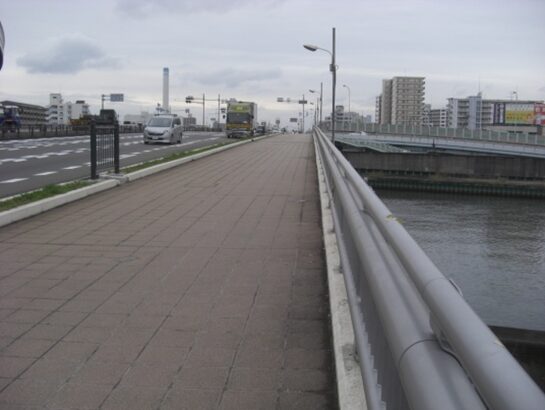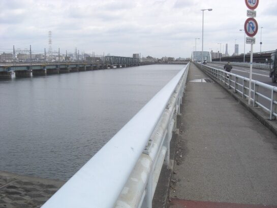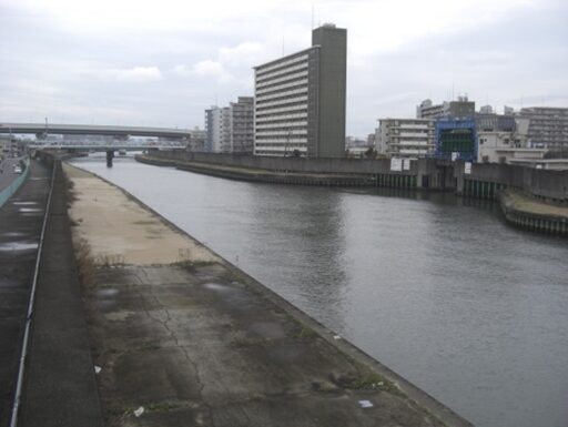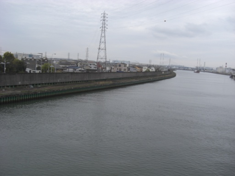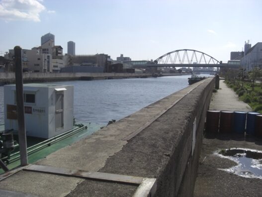 中島大橋の少し上流で神崎川が分流して、上流から見て、右が中島大橋、左へ分流する神崎川に架かる橋が出来島大橋となる。この川は神崎川の分流で出来島大橋から来たものである。(文章で書くとややこしい)