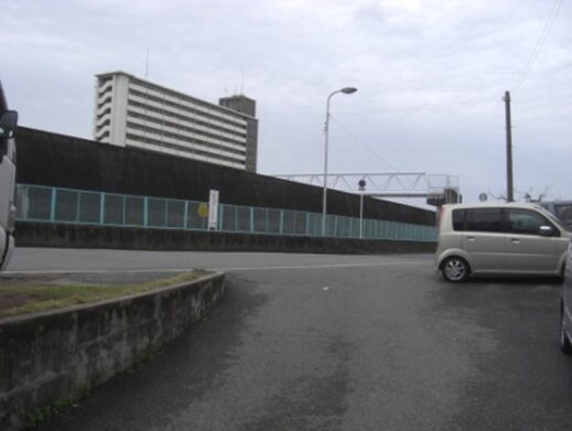 そして100mほどで国道43号線に出るが、国道に入らず手前の大野川埋め立て緑地帯を右斜めに緑地道路に沿って南に進む