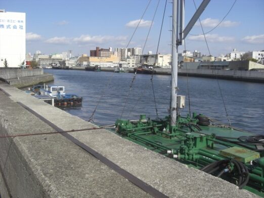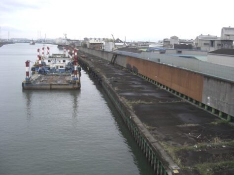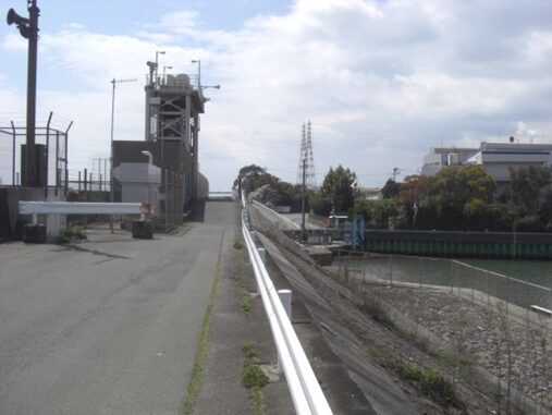 西九条1丁目の細い道を進んでいくと、やがて、安治川に突き当たる