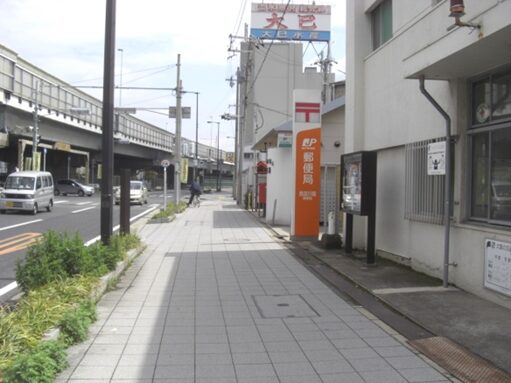 尼崎街道は大和田街道と同じく駅前の横断歩道を渡り正面の細い道を進む。そして、左の大物川を埋め立てた緑地帯を左に沿って進む。(大和田街道参照)。今回は広い道を300mほど真っ直ぐ進み、阪神高速3号神戸線の高架・国道43号線にでて左に折れるコースをとる。