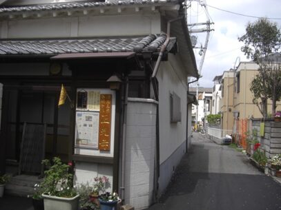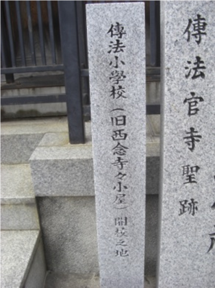旧道沿いに 伝法官寺聖跡・伝法小学校(旧西念寺寺小屋)開校の地の碑