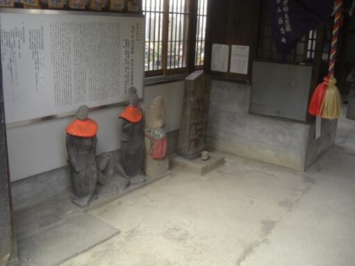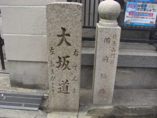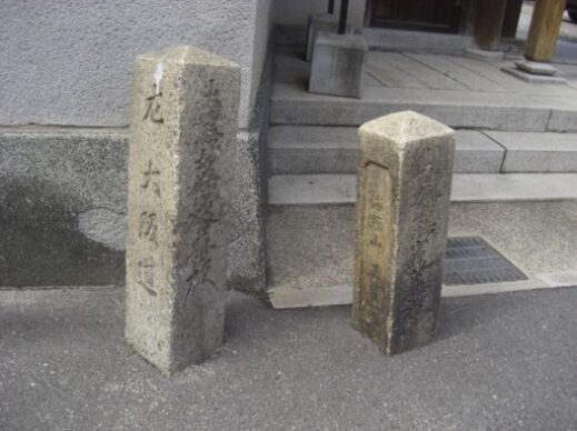 門前にある、尼崎街道の 二基の道標 「左 大坂道」
