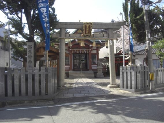1698年九条村の池山新兵衛が420両を納めて開拓し、佃・大和田の対岸より西にあるところから西島と名付けられた。開発のおり、この地の守護神として住吉四柱大神を観請した。この辺りはかつては美しい川辺で遊んだり、村の人たちの畑仕事や洗濯をしたり、のぞかな田園風景がみられた反面。水禍をまともに受ける土地でもあり村人達から崇拝が高かった。しかし今ではそのような情景は想像することもできない風景である。