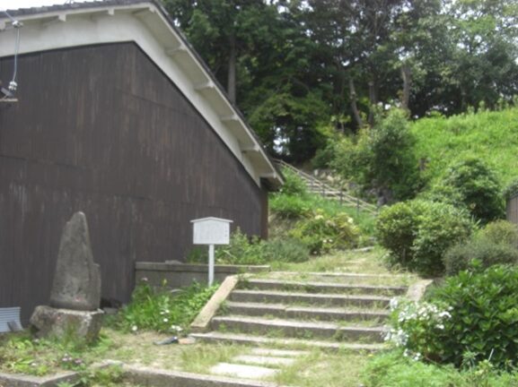 墓の入り口に建つ 塚と道標 「正平塚吾妻奥五郎墓万稱山兼道標」