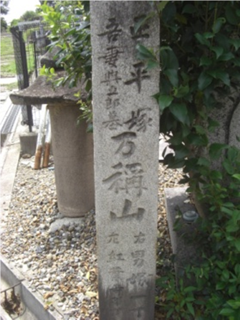 墓地入り口右 道標「万稱寺跡 右…左…」