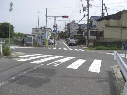 広い道の交差点を横断する