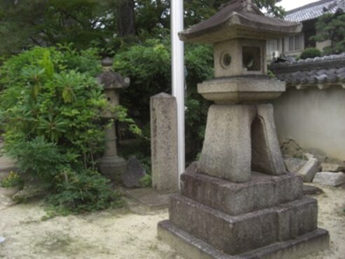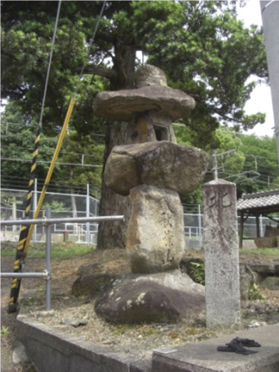 その先右に 灯籠と道標 読めない