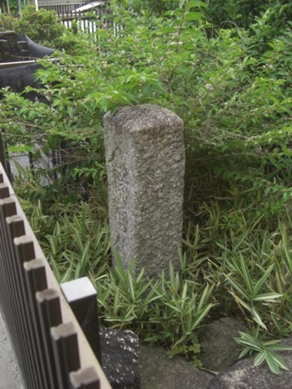 道が分岐する右の塀際に 道標