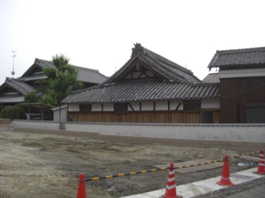 この辺り一角には古い豪壮な民家が建つ