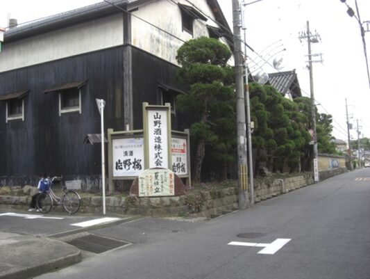すぐ先左に 山野酒造「片野桜」