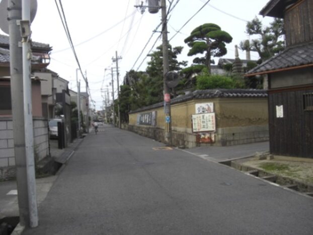 京阪交野線の踏切を渡り、砂子板に入る右に進むと交野駅