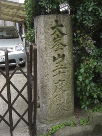 街道筋左に 大峯山五十度供養の道標「左 京 よど あたご やわた 伏見 う治 すぐ いせ いか なら」