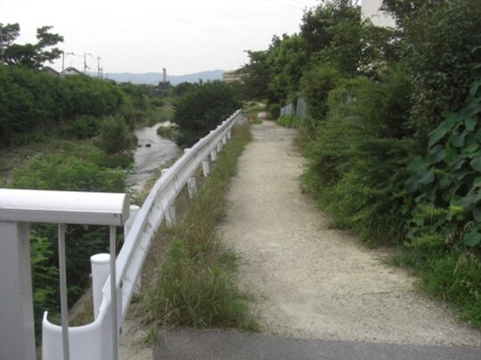 左にJA北河内交野を見て、小さな橋を渡る